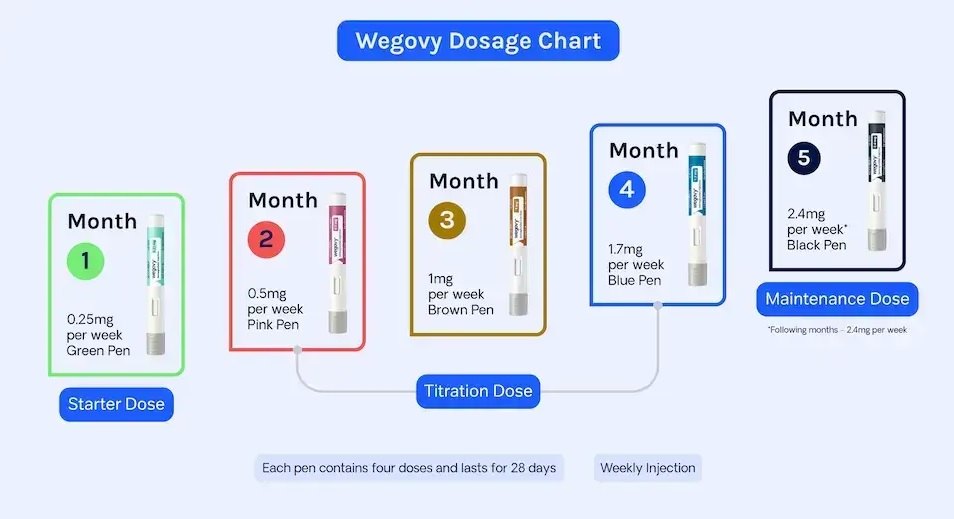 The Wegovy dose is increased every 4 weeks for 16 weeks. This means that patients take a 0.25mg once weekly dose for the first 4 weeks and gradually increase it until they reach the maintenance dose of 2.4 mg once weekly from week 17 onwards. This gradual increase is important because it minimises the risk of side effects. If side effects do occur, most will be experienced during the dose-escalation phase before improving.